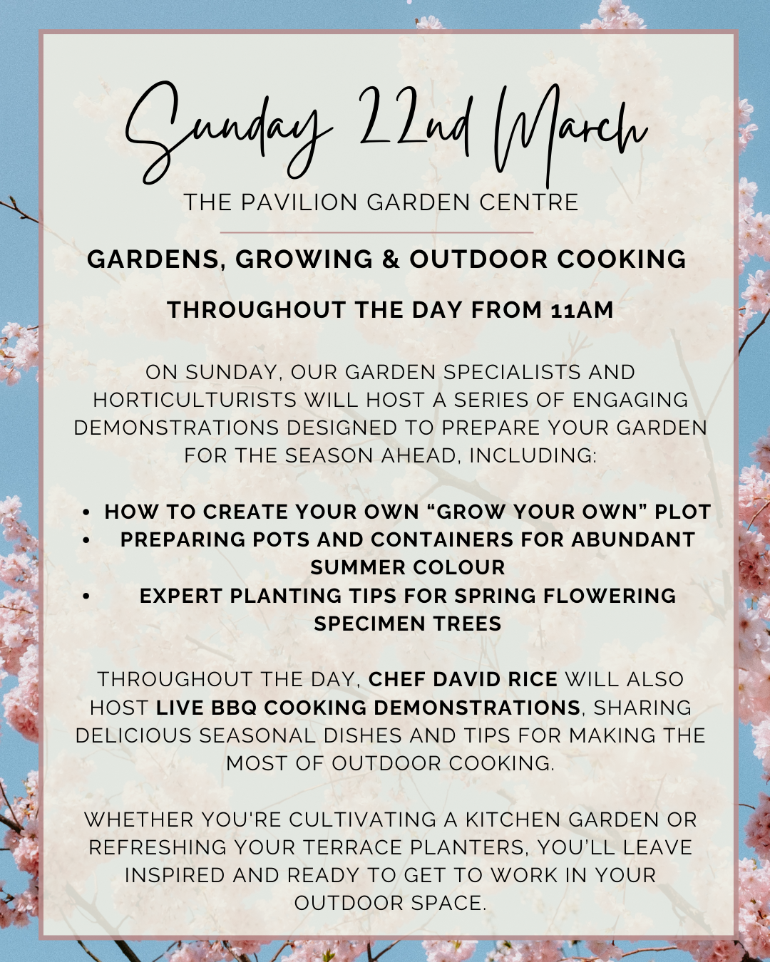 From learning how to achieve year-round colour in your garden, to mastering the art of outdoor cooking and preparing your planting schemes for Summer, each day is designed to inform, inspire and help you make the very best of your outdoor space.